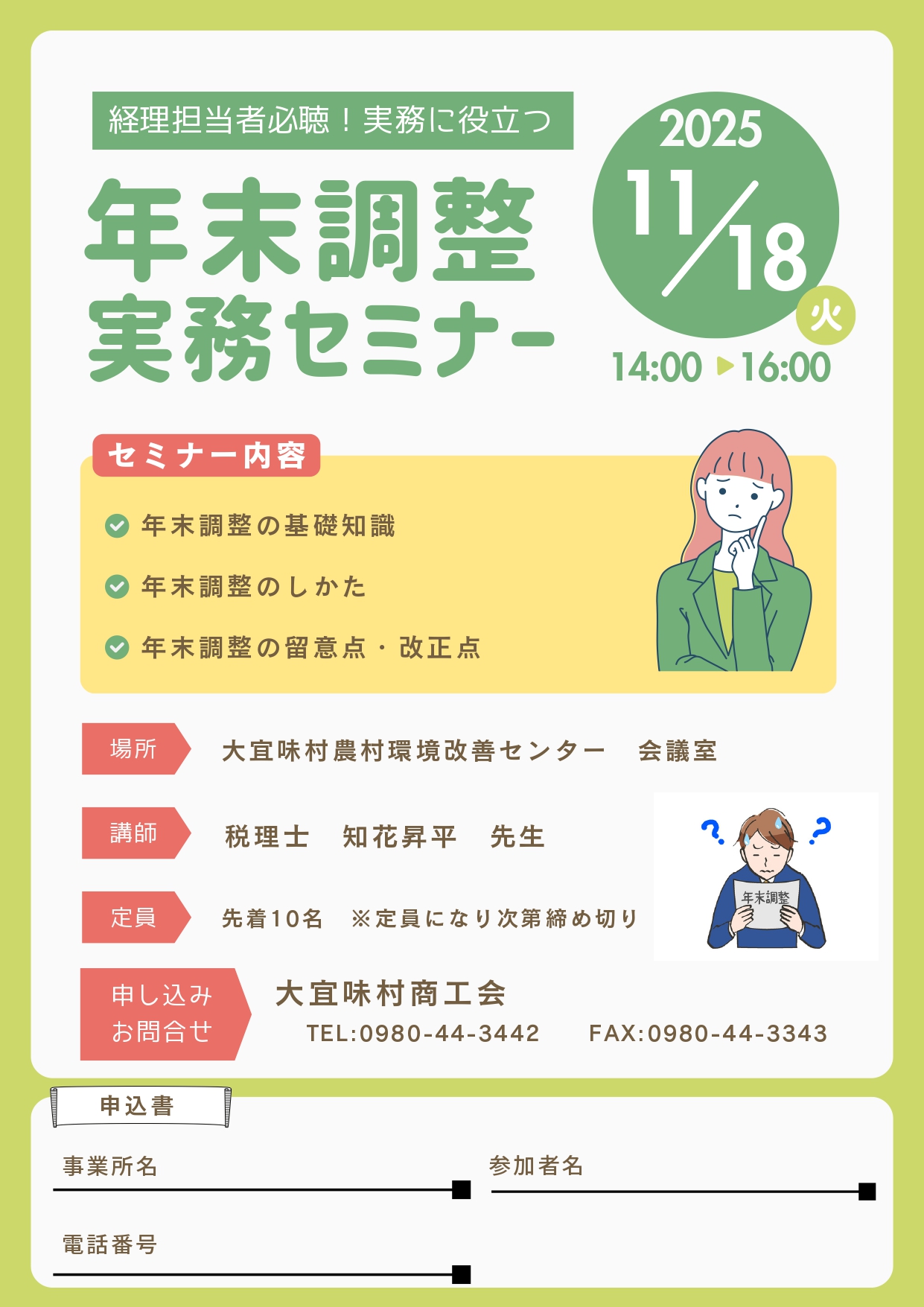 大宜味村商工会より、年末調整実務セミナー開催のお知らせです。
